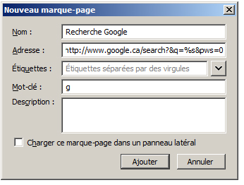 Le mot clé sert de raccourci pour y accéder. Vous pouvez y accéder directement de la barre d'adresse. Par exemple, si vous recherchez Bouquets de fleurs, vous n'aurez qu'à entrer g bouquet de fleurs dans la barre d'adresses. Vous obtiendrez un résultat dépersonnalisé.